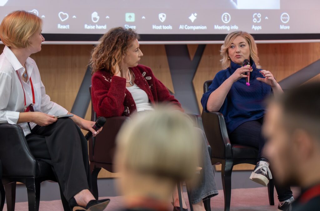 Панельна дискусія “Інновації, еволюція, перевірена стабільність: що рухає українські медіа в сучасному світі?” об’єднала лідерів українських медіа, які працюють у трьох різних площинах: незалежна журналістика, велике телебачення та аналітика. Модерувала зустріч Наталія Беднарська, диджитал-директорка Національної Асоціації Медіа.